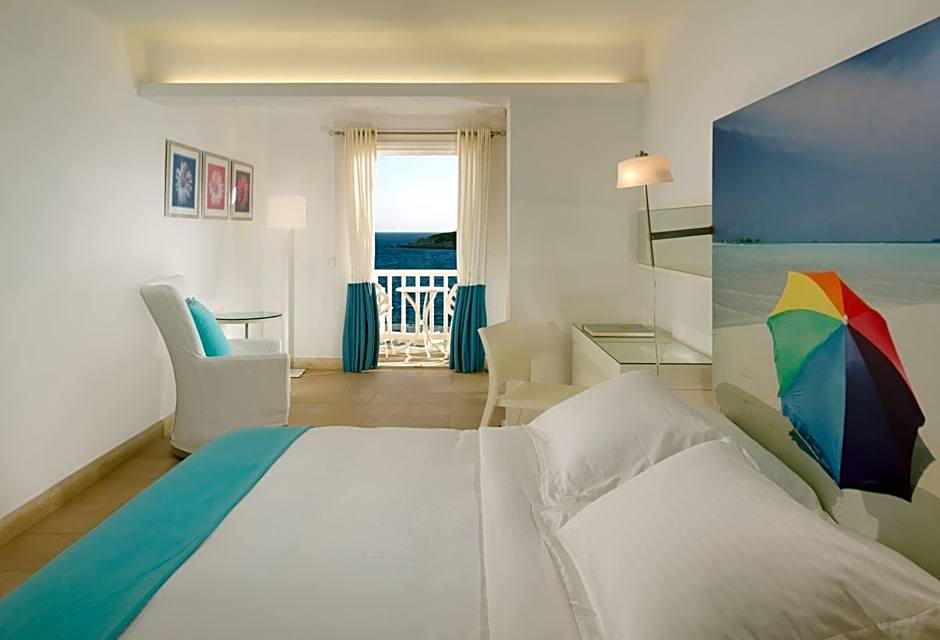 Air-conditioned room with a satellite TV, mini fridge, safety box, mini-bar and private balcony or terrace overlooking the sea.